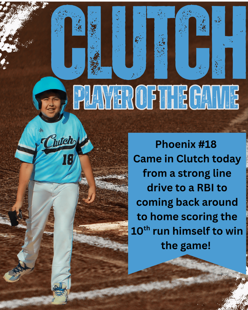 Came in Clutch today from a strong line drive to an RBI to coming back around to home scoring the 10th run himself to win the game!